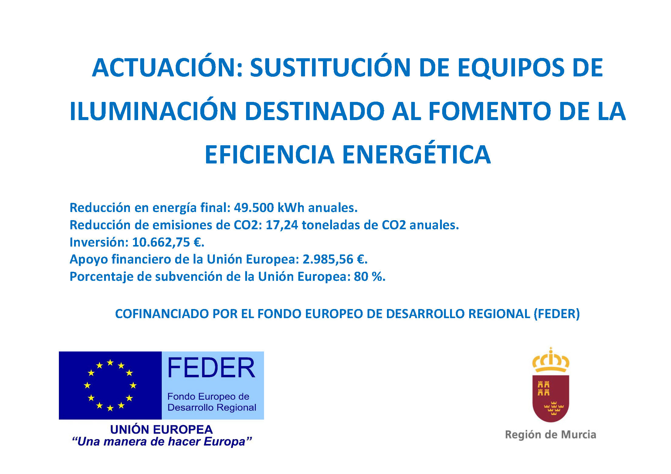 Actuaciones destinadas al fomento de la eficiencia energética y el uso de energías renovables cofinanciada por el Fondo Europeo de Desarrollo Regional (FEDER) y la Región de Murcia: