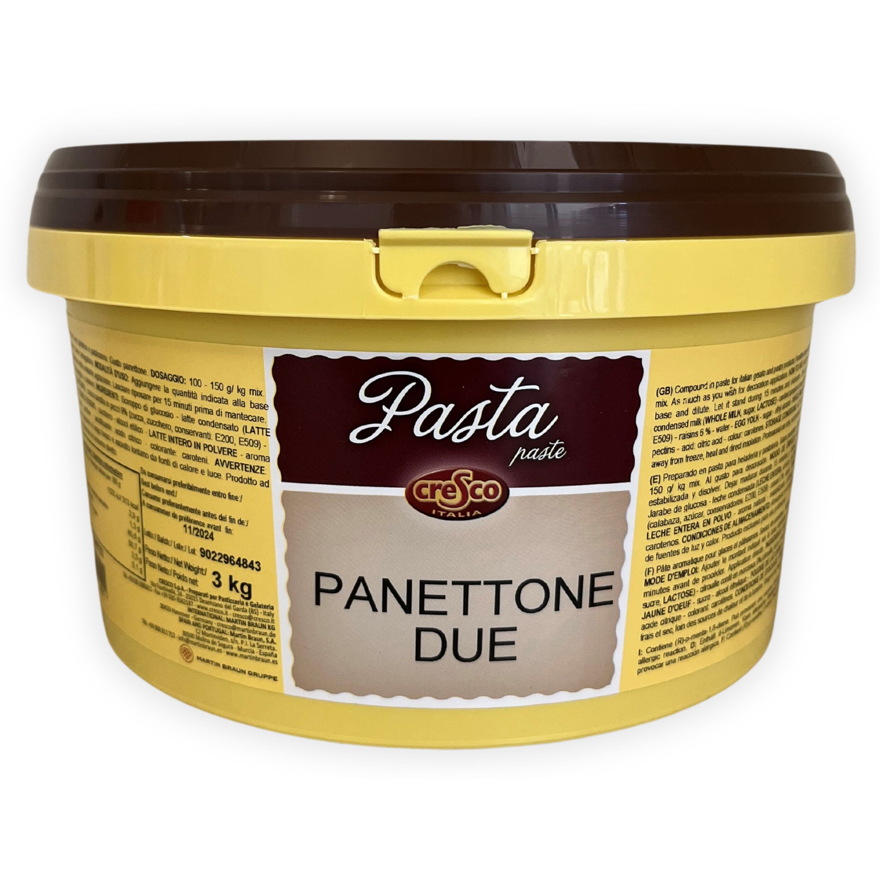 Producto con doble aplicación: veteado y pasta sabor panettone