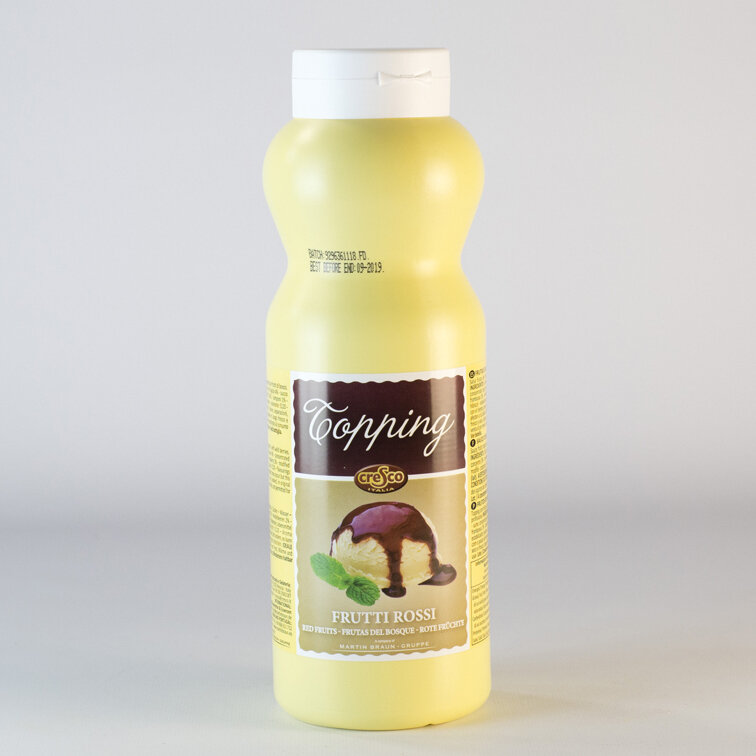 Sirope de frutas del bosque para decorar helados, postres y tartas.