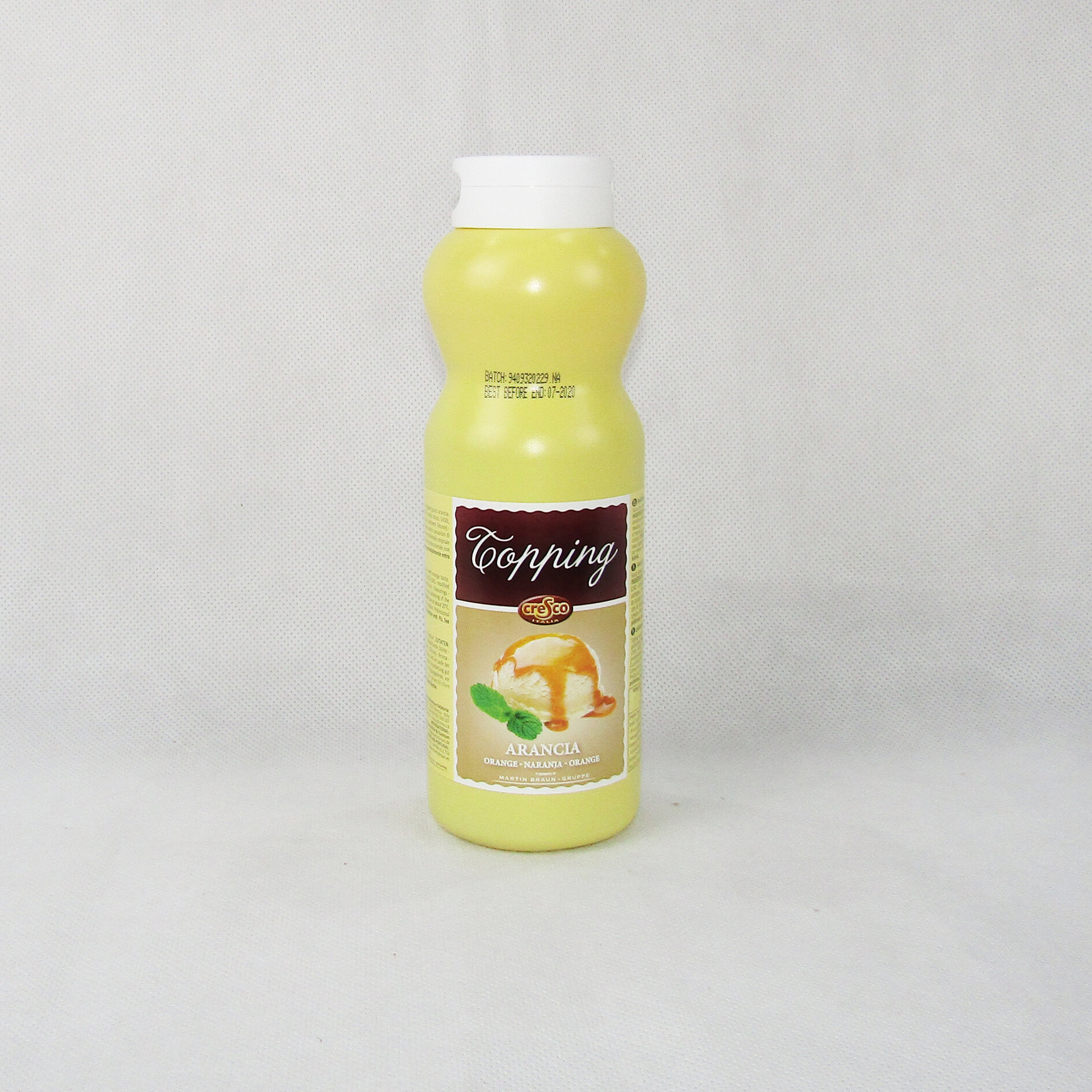 Sirope de naranja para decorar helados, postres y tartas.