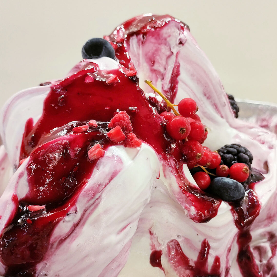 Veteado de frutas del bosque con azúcares naturalmente presentes. Sin azúcares añadidos.