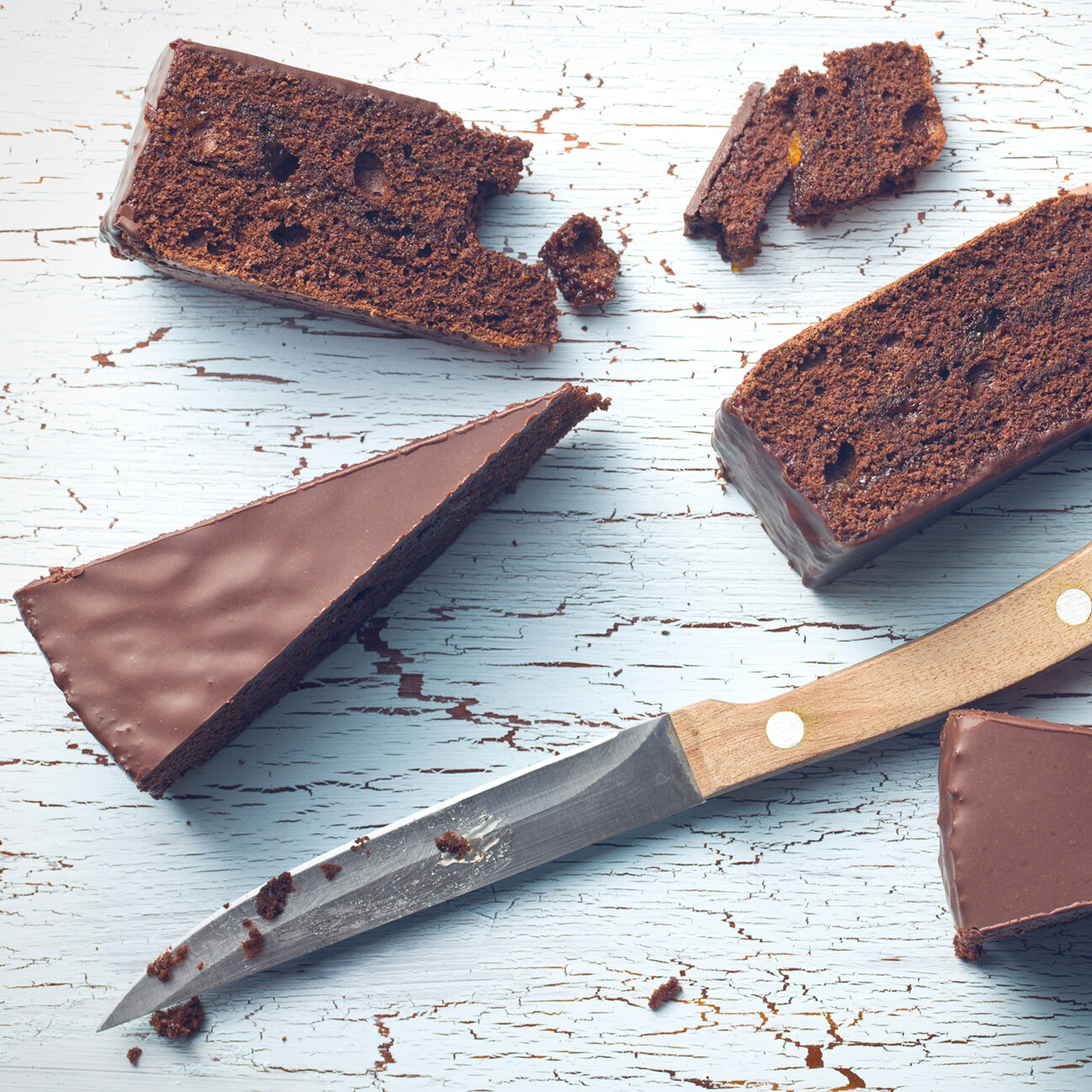 Una vez frío el bizcocho, cortar a la mitad, rellenar con la ganache utilizando manga y boquilla lisa, una de las porciones de bizcocho.