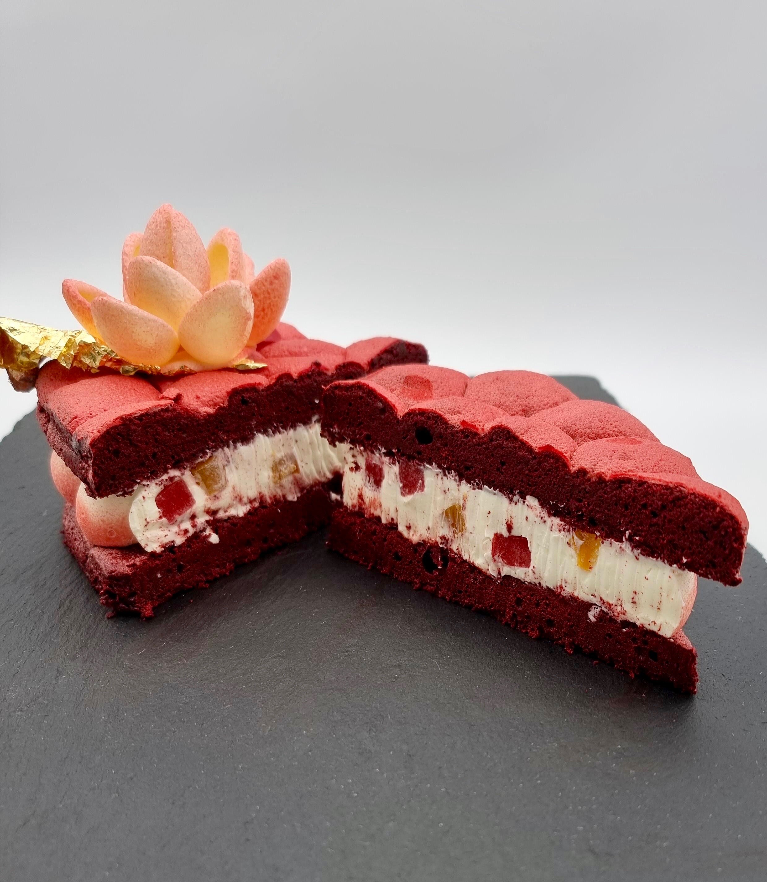 Decorar con cobertura roja en Spray y una flor realizada con Schok Weiss chips Cobertura Blanca Lubeca.