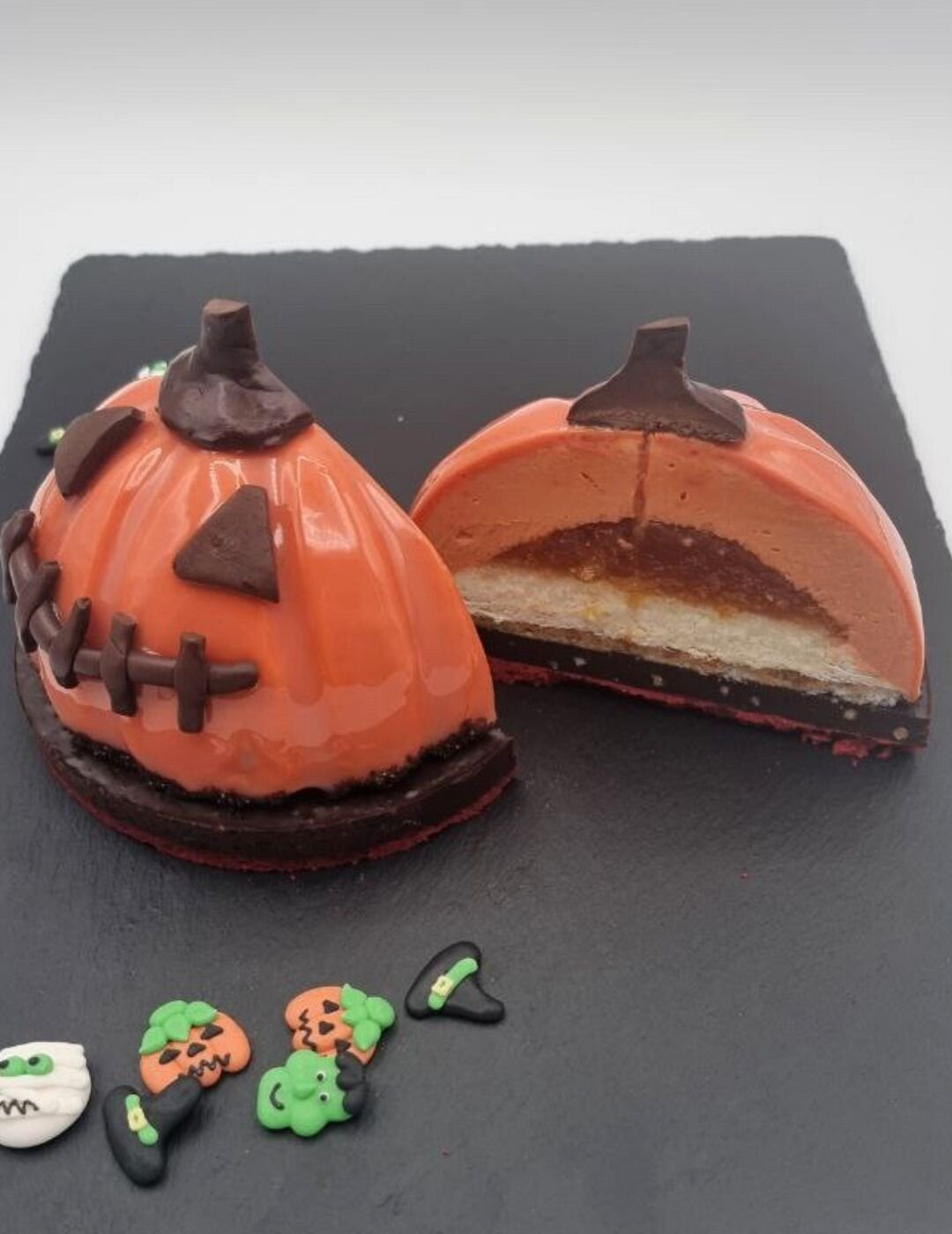 Desmoldar, marcar las formas de calabaza y volver a congelar.